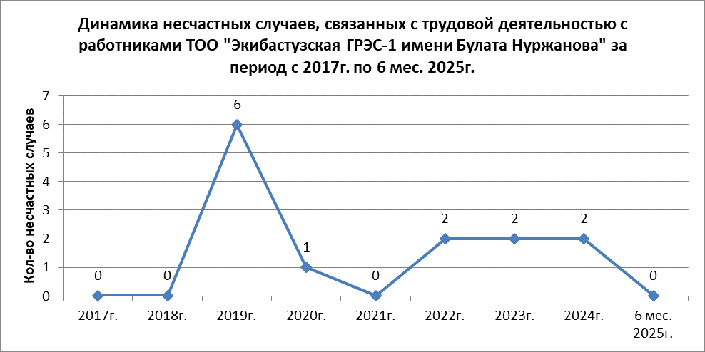 2025 жылдың 6 айында «Екібастұз 1-МАЭС» ЖШС жұмыскерлерімен еңбекке қабілеттілігін жоғалтпаған 1шағын жарақат тіркелді.