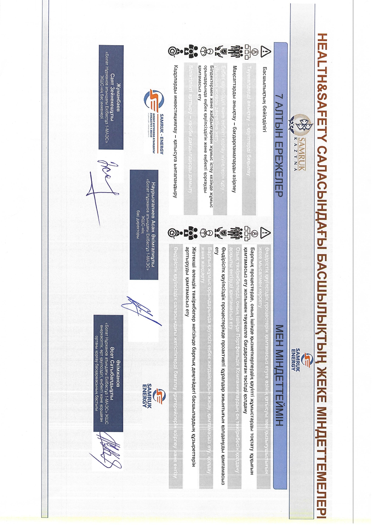 HEALTH&SAFETY САЛАСЫНДАҒЫ БАСШЫЛЫҚТЫҢ ЖЕКЕ МІНДЕТТЕМЕЛЕРІ